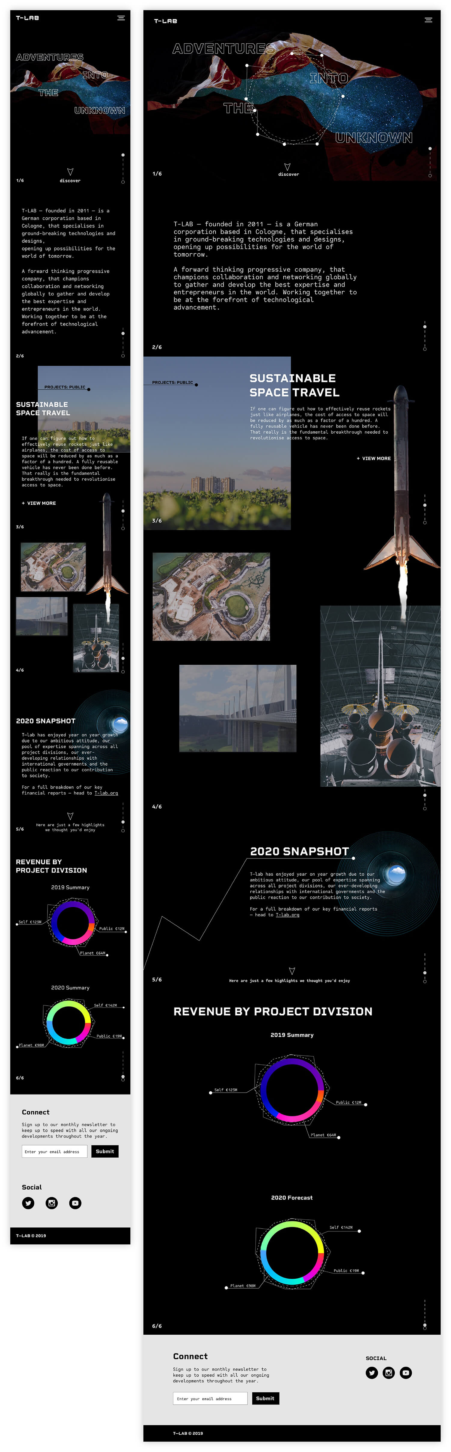 The challenge: To create a microsite displaying the company’s corporate report in an engaging and unique way whilst embodying the innovative, audacious, risky and creative values of T-Lab.